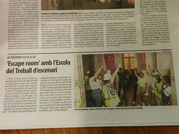ET Alumni organitza Escape Rooms de manera periòdica perquè puguis compartir una bona estona amb família, amics o antics companys ALUMNI. La temàtica sempre està vinculada amb l'Escola del Treball, reflectint així la profunda connexió de la institució amb la ciutat i amb tots els qui n’han format part.